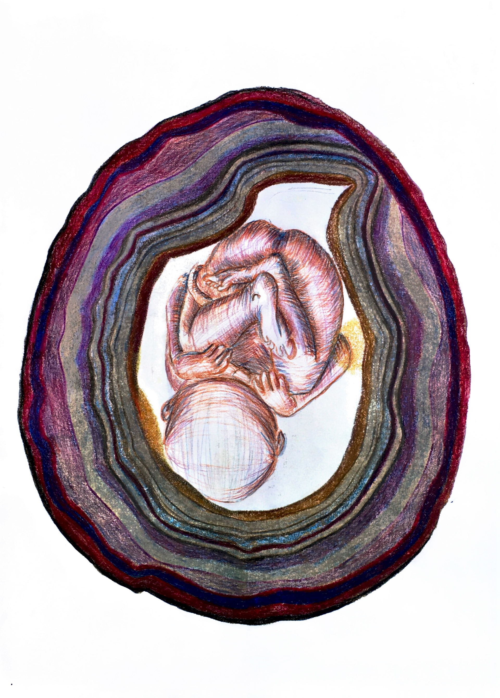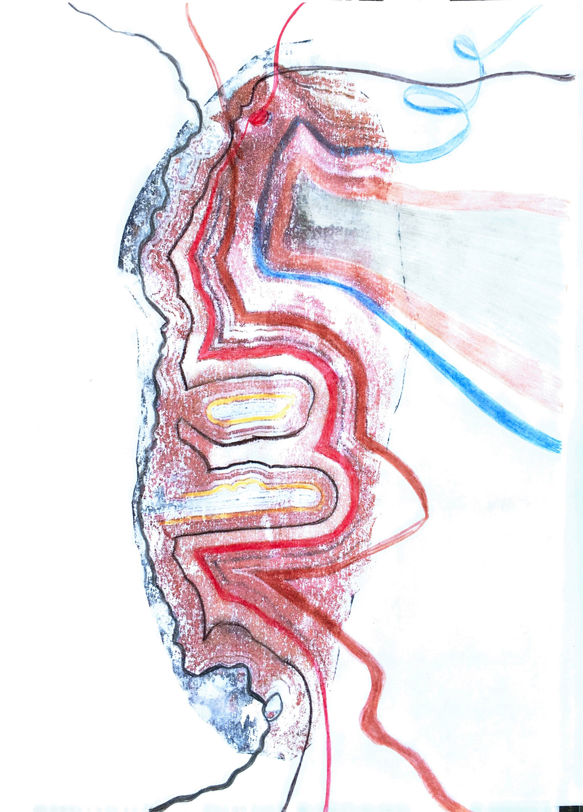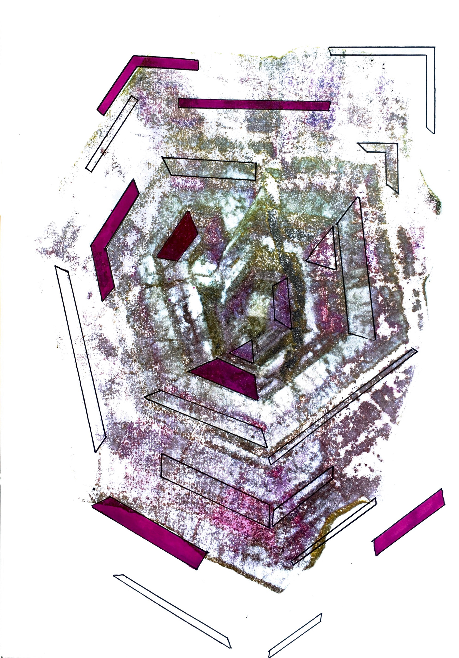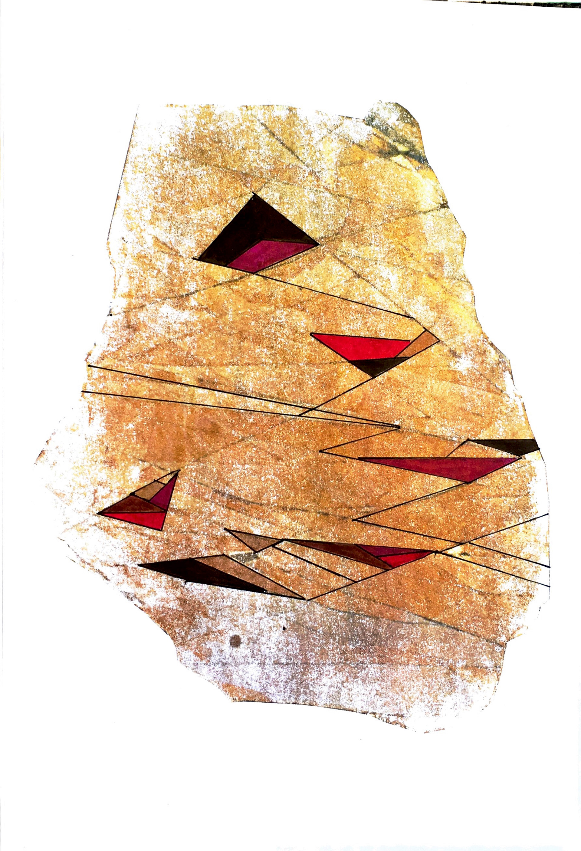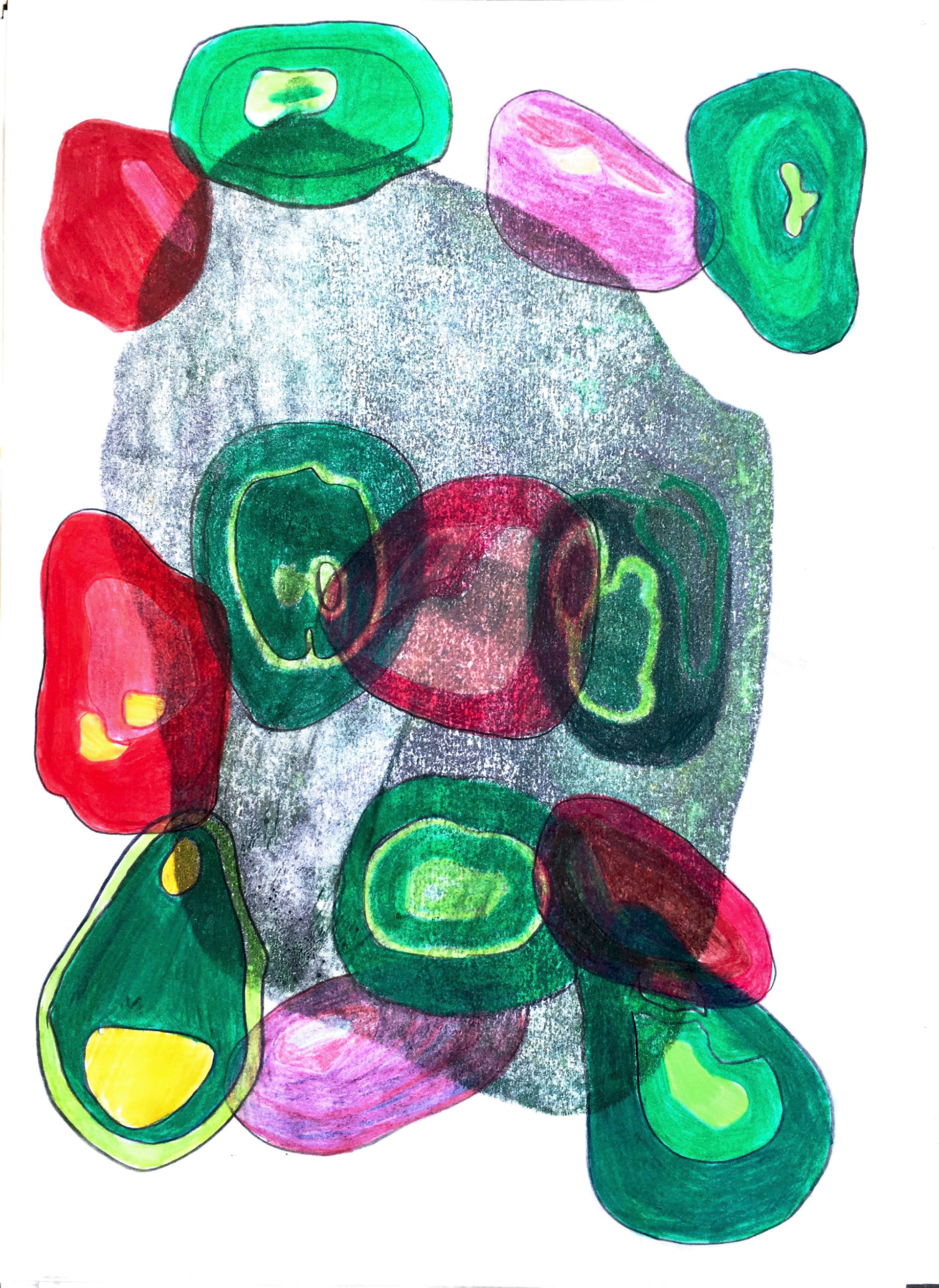 Using acetone transfer technic on Roger Caillois stone collection: La lecture des pierres. I then drew shapes according to the stone. Acetone transfer, charcoal, pencil, felt pen, 29.7 x 21 cm.